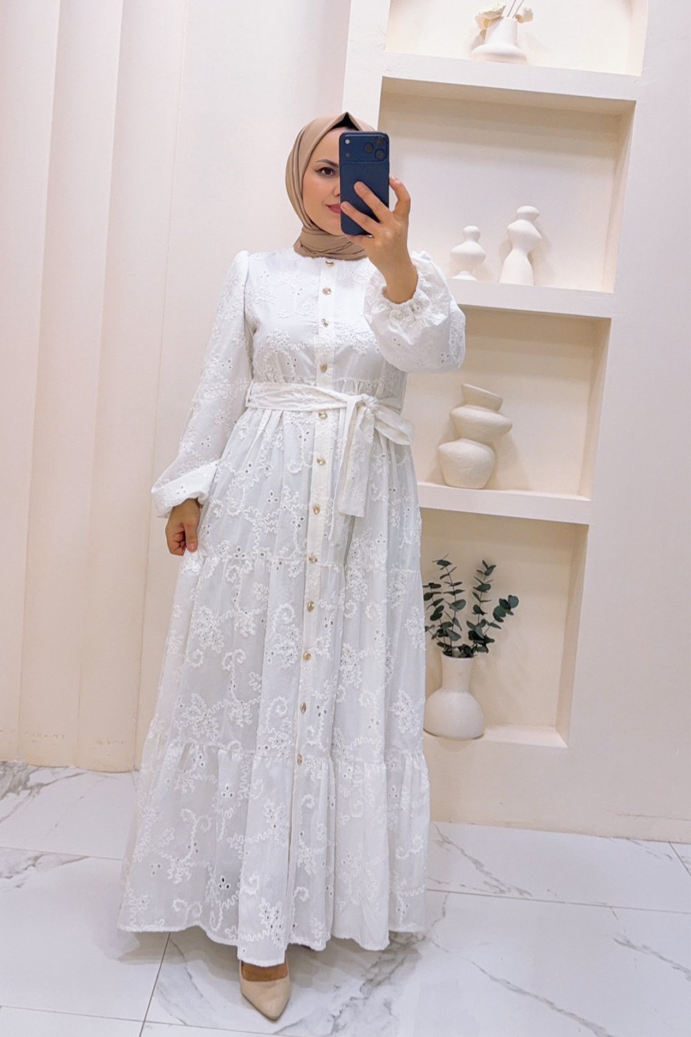 Elbise Brode Filiz Beyaz