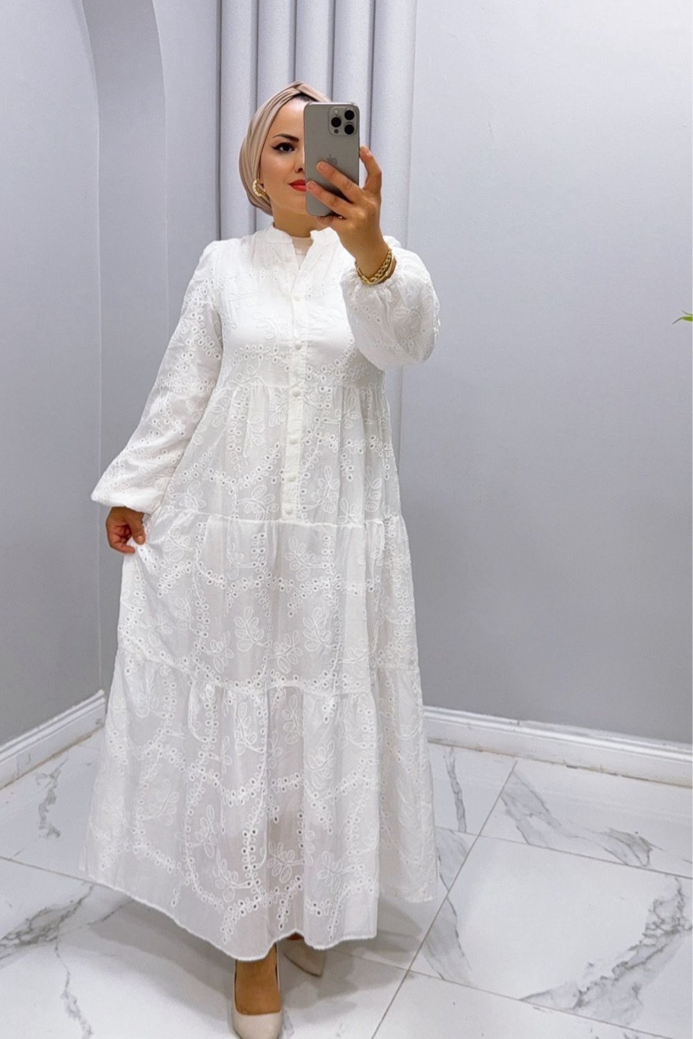Elbise Dantel İdil Beyaz