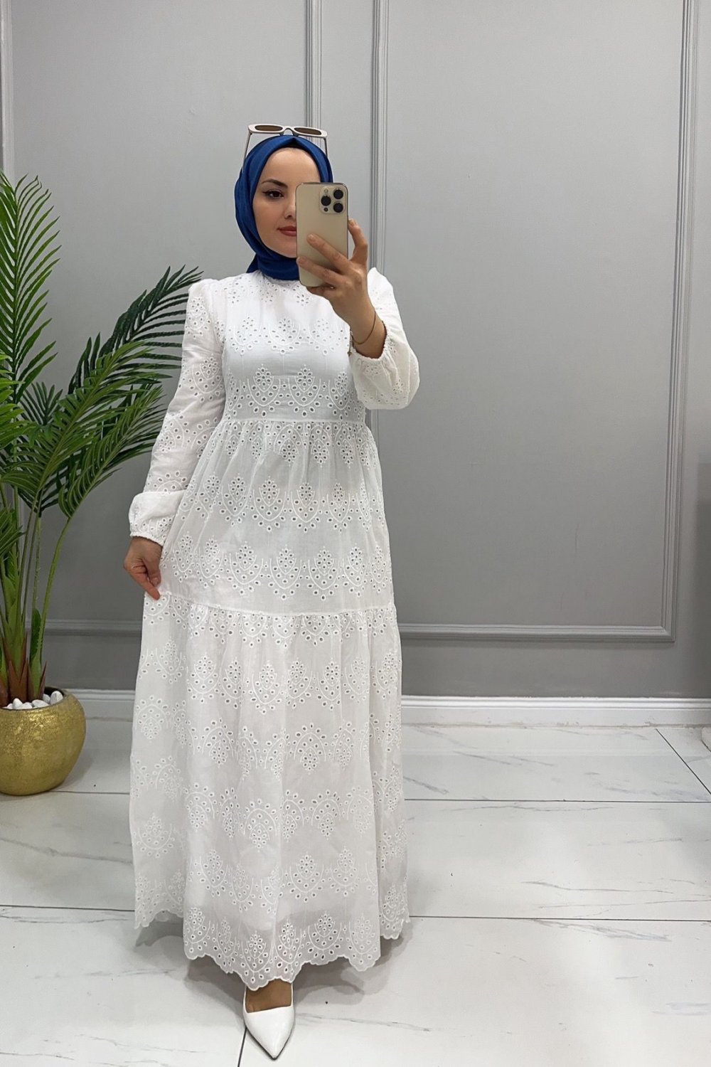 Elbise Dantel Şelale Beyaz