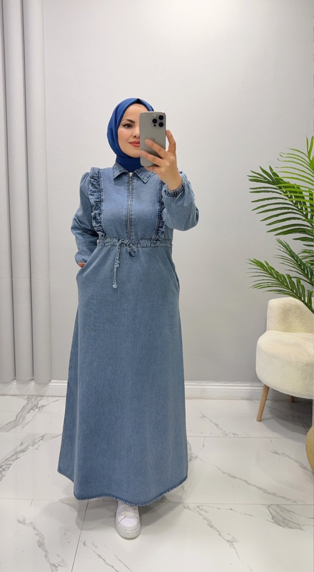 Elbise Kot Gazel Mavi