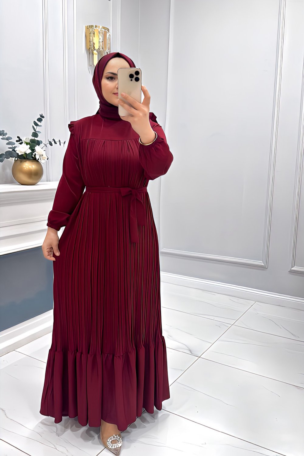 Elbise Piliseli Maide Bordo