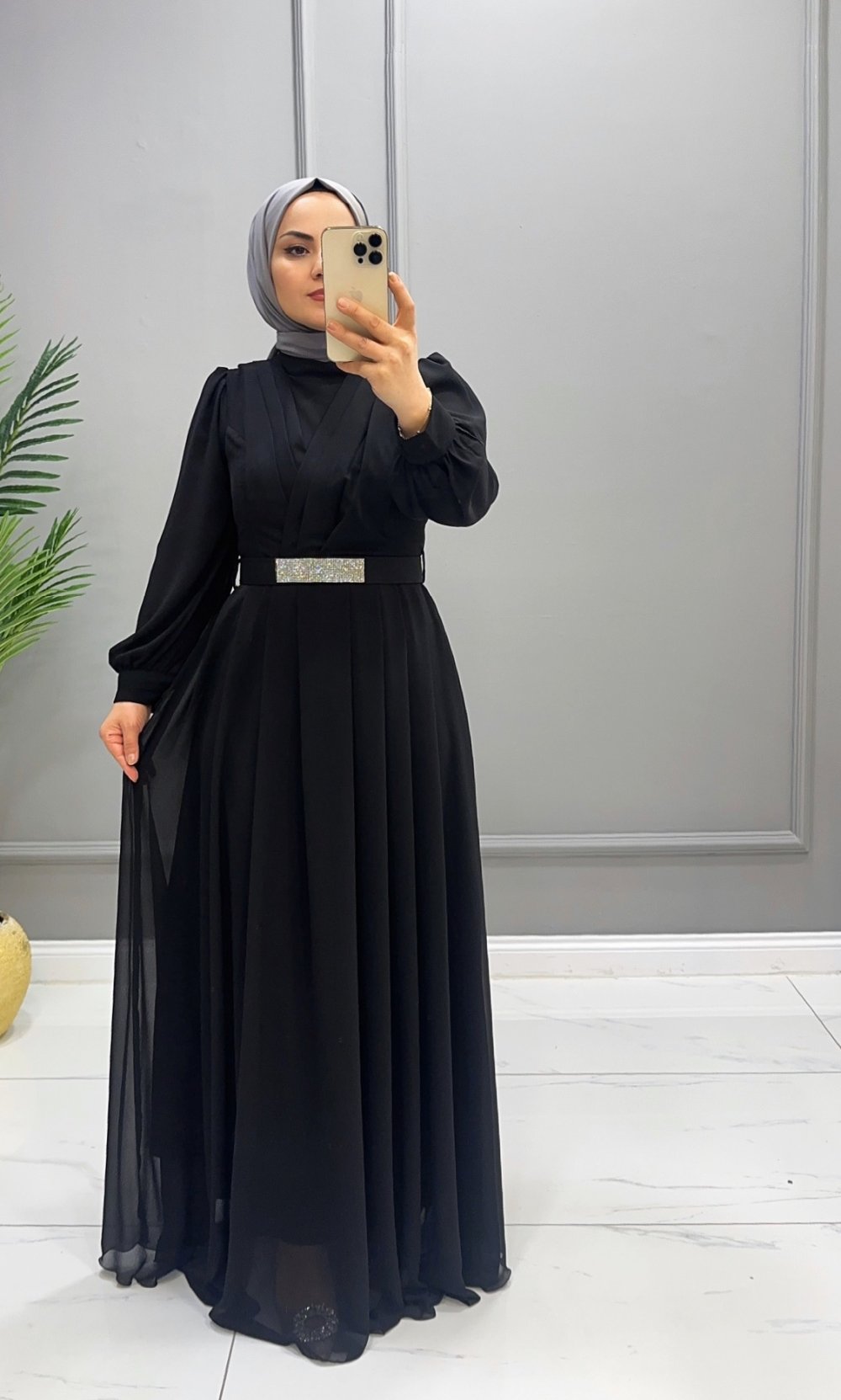 Elbise Şifon Ela Siyah