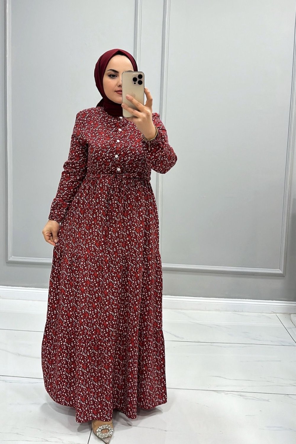 Elbise Viskon Buçe Bordo