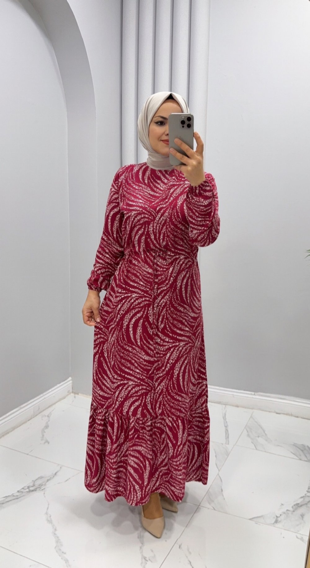 Elbise Viskon Zebra Naz Kırmızı