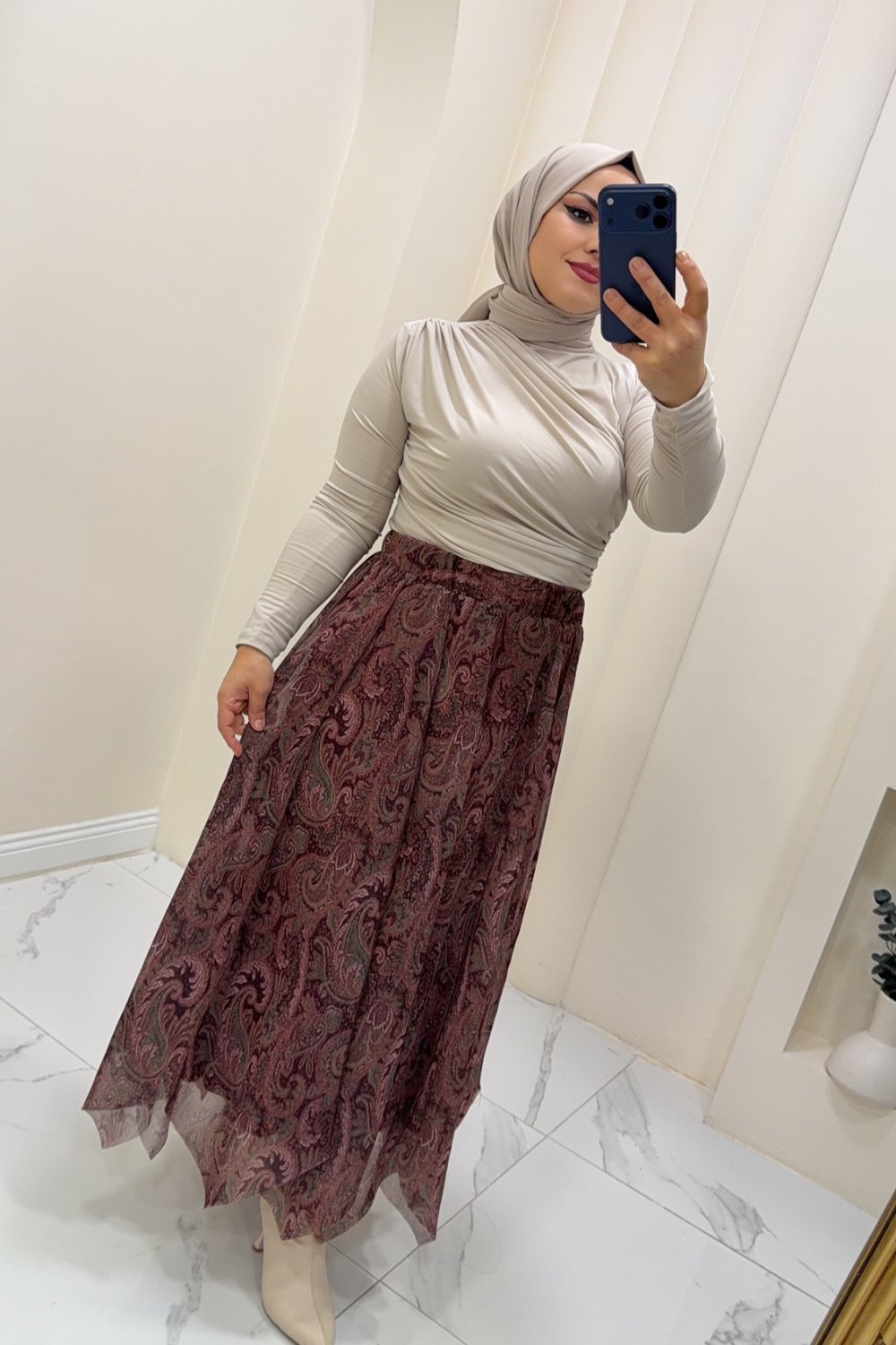 Etek şifon Afet Bordo