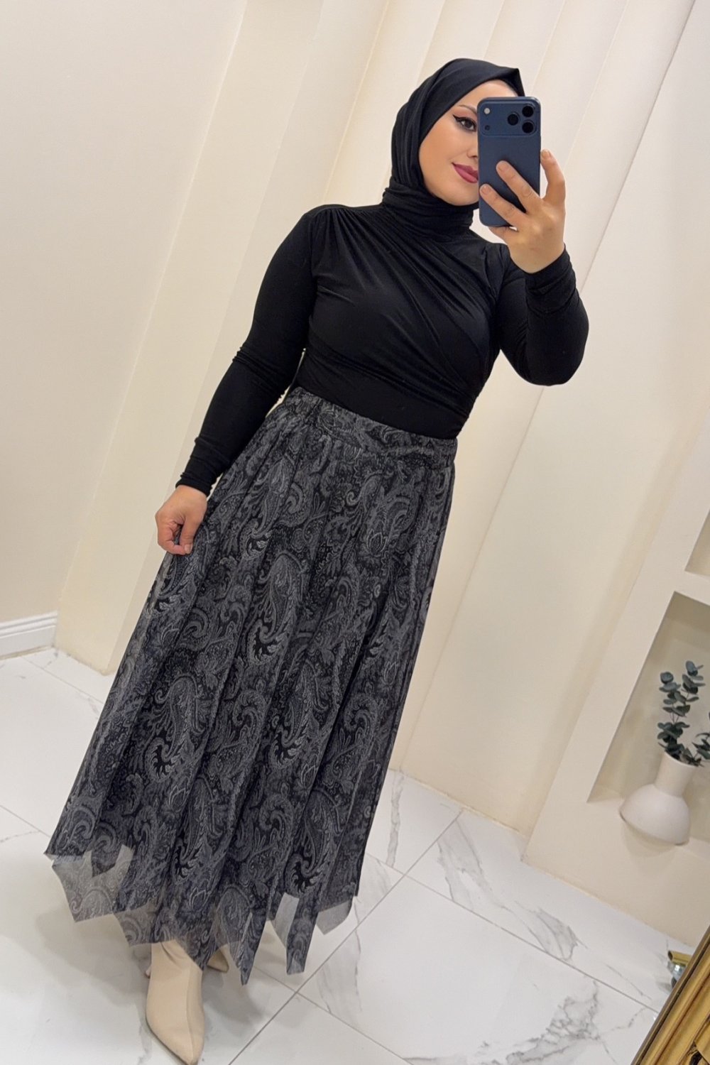 Etek şifon Afet Siyah