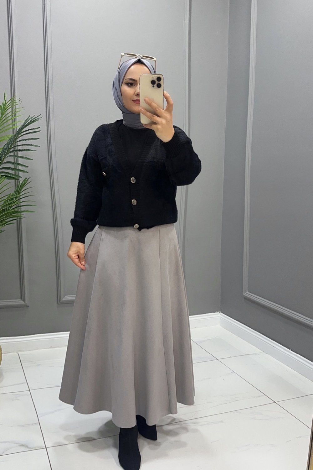 Etek Süet Elif Gri