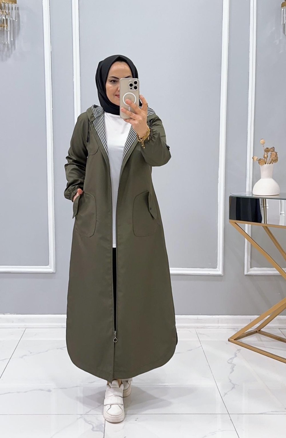 Zara çizgili mevsimlik kapbrÜRÜN KODU: 3205brKUMAŞ : Bondik Su geçirmez yağmurluk kumaş brBEDEN : 388042444648brUYARI: Ürün Boy ölçüsü Arka Ense Kısmından Alınmaktadır.br
