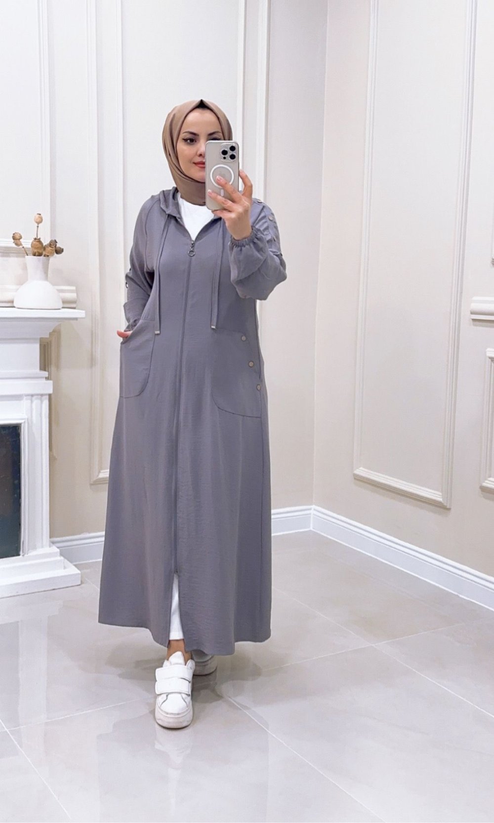 Kap Kolu Düğmeli İfakat Gri