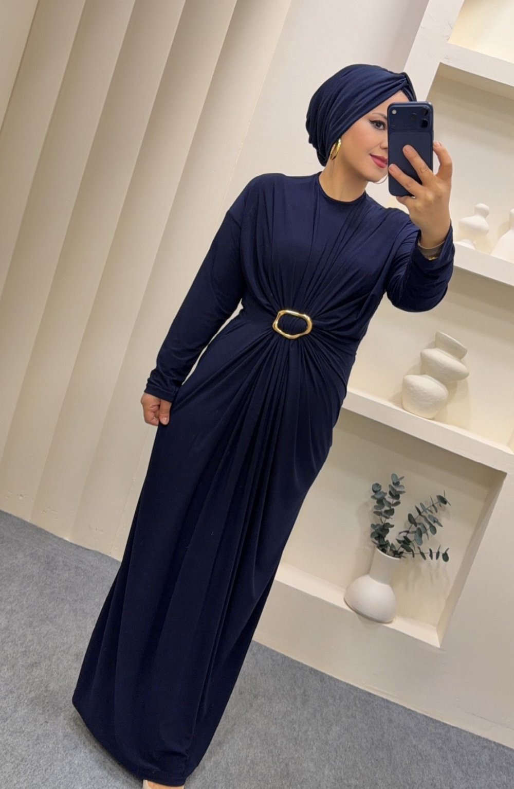 Sandy Büzgülü Linda Elbise Lacivert