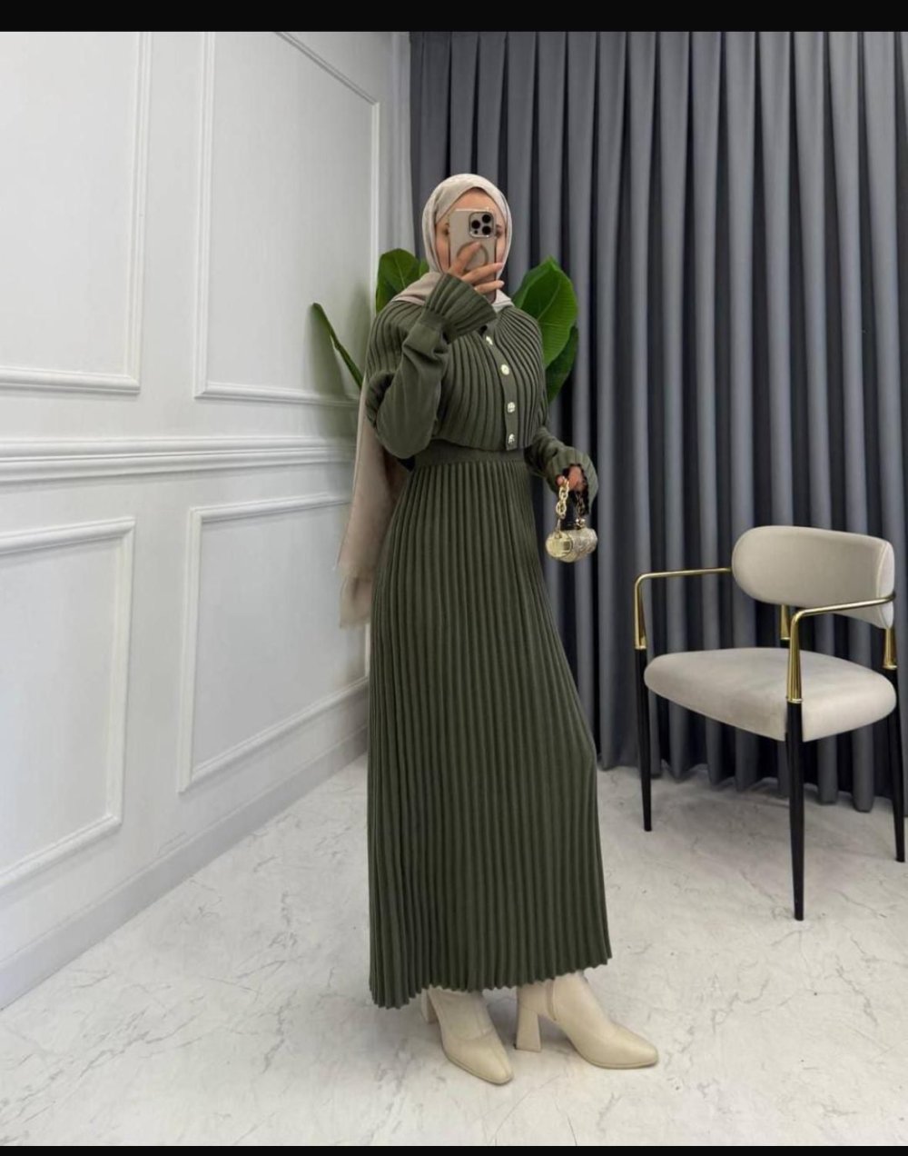 Seren Triko Elbise Haki