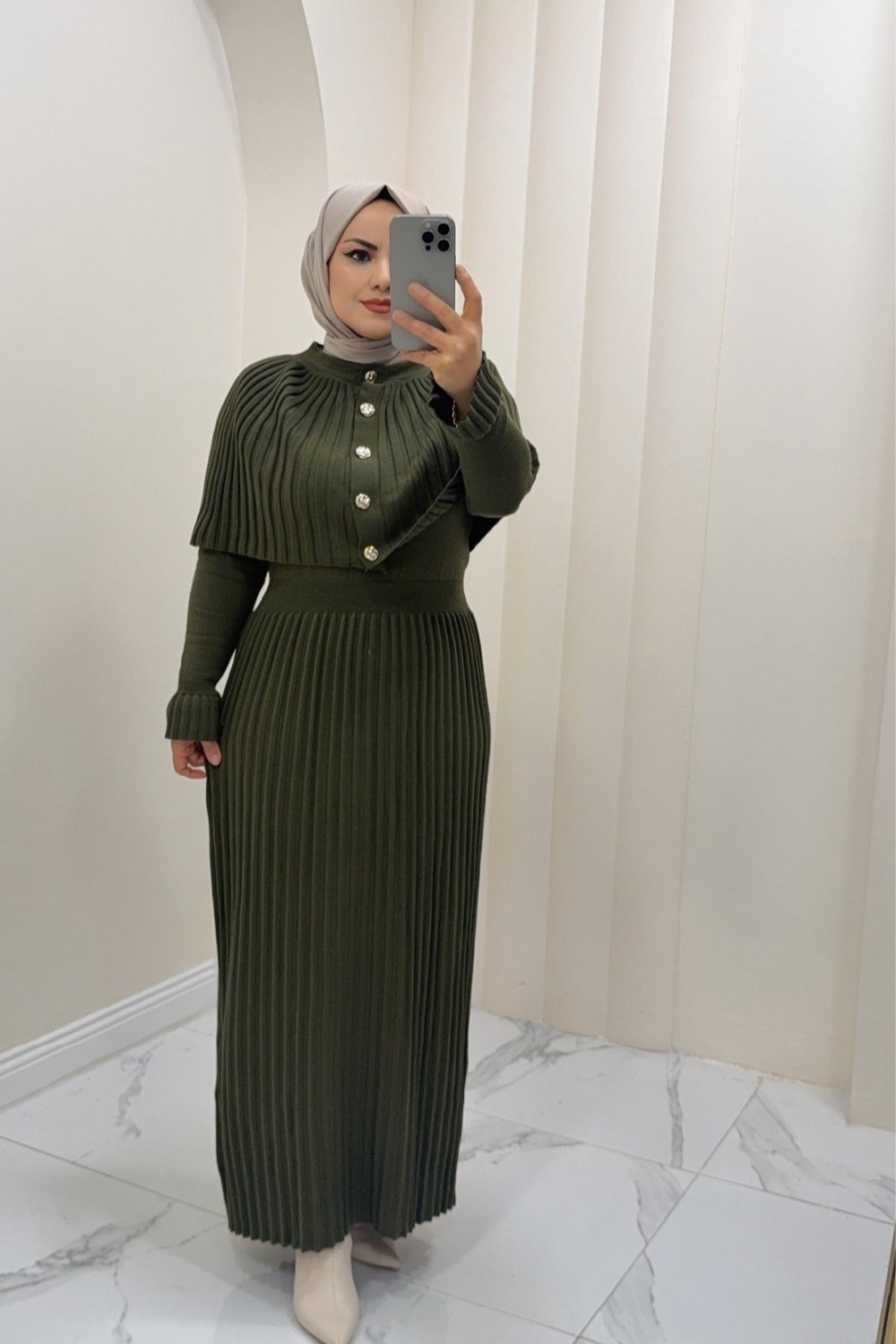 Seren Triko Elbise Haki