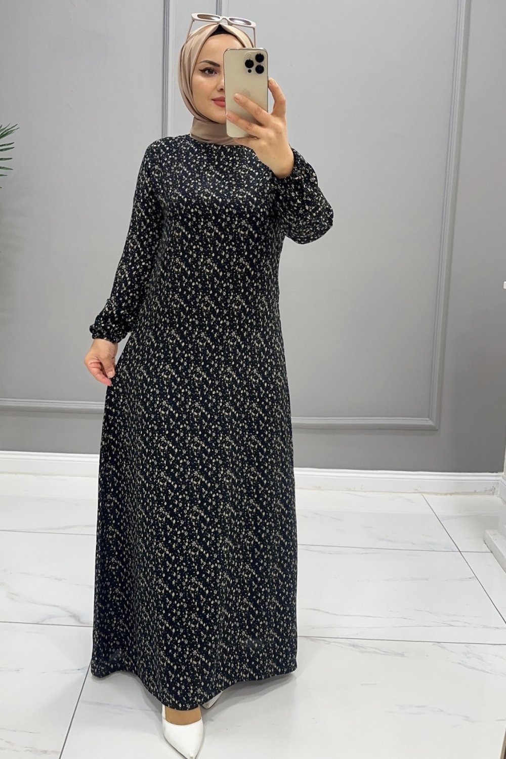 Viskon Begonvil Elbise Siyah