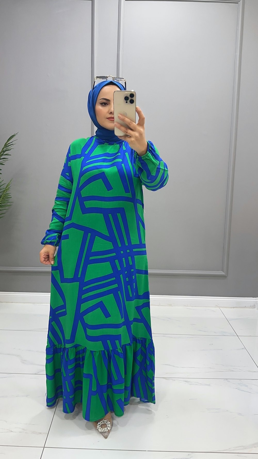 Viskon Labirent Elbise Yeşil
